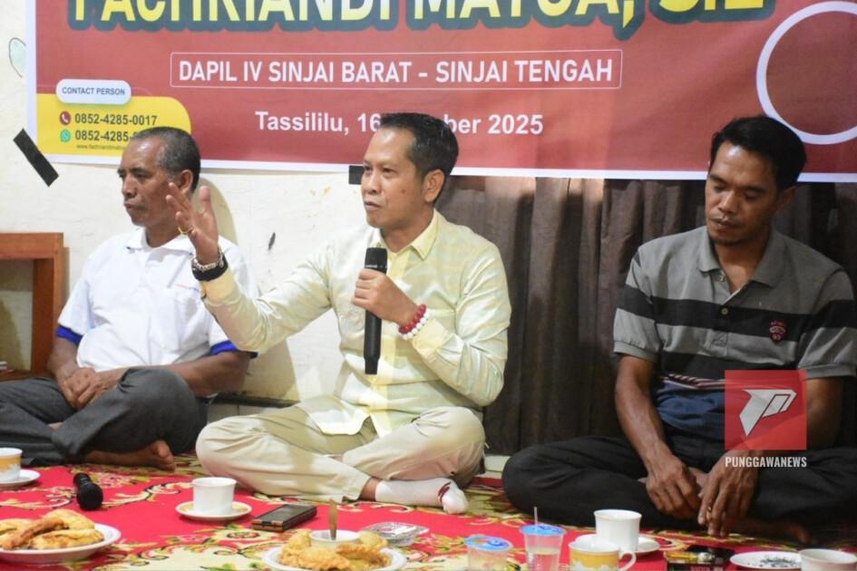 PUNGGAWANEWS, SINJAI โ€” Kehadiran Wakil Ketua I Dewan Perwakilan Rakyat Daerah (DPRD) Sinjai, Fachriandi Matoa, membawa nuansa berbeda di Lingkungan Kaluarang Daulu, Kelurahan Tassililu, Kecamatan Sinjai Barat. Sabtu lalu (18/10/2025), politikus sekaligus Ketua DPC Partai Gerindra Sinjai tersebut menggelar kegiatan reses masa sidang tahun 2025 untuk menjalin komunikasi langsung dengan konstituen.