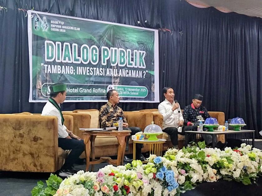 PUNGGAWANEWS, SINJAI — Himpunan Mahasiswa Islam (HMI) Cabang Sinjai melalui Bidang Perguruan Tinggi, Kemahasiswaan, dan Pemuda (PTKP) menggelar dialog publik bertajuk “Tambang: Investasi atau Ancaman?” di Aula Hotel Grand Rofina, Jalan Jenderal Sudirman, Kelurahan Biringere, Kecamatan Sinjai Utara, Kamis (13/11/2025) siang.