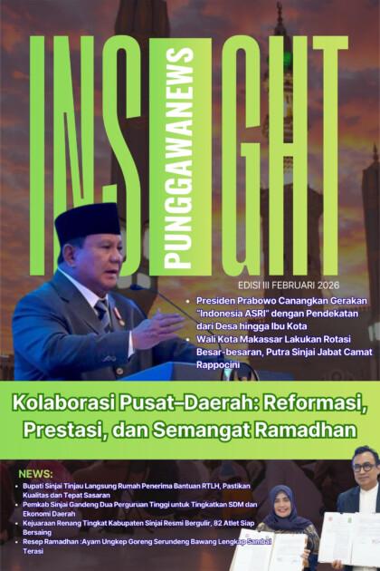 PUNGGAWANEWS, Insight Edisi III Februari 2026 merangkum dinamika pembangunan dari pusat hingga daerah. Presiden Prabowo Subianto mencanangkan gerakan Indonesia ASRI sebagai simbol kolaborasi nasional berbasis desa hingga ibu kota. Di Makassar, rotasi besar pemerintahan menandai penyegaran birokrasi, termasuk hadirnya putra daerah yang dipercaya memimpin kecamatan strategis. Sementara itu, Sinjai menunjukkan fokus pada kualitas bantuan RTLH, penguatan SDM lewat kemitraan kampus, serta semangat sportivitas melalui kejuaraan renang. Nuansa Ramadhan turut dihadirkan lewat sajian kuliner tradisional yang menghangatkan kebersamaan.
