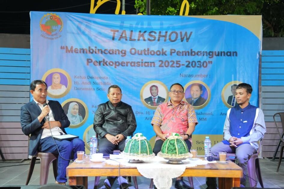 PUNGGAWANEWS, SINJAI — Ketua Komisi I DPRD Kabupaten Sinjai, Sutomo, mewakili Ketua DPRD Sinjai menjadi salah satu narasumber dalam Talkshow Perkoperasian yang digelar Dewan Koperasi Indonesia Daerah (Dekopinda) Sinjai di Cafe D’Simpel, Jalan Baso Kalaka, Kecamatan Sinjai Utara, Selasa (11/11/2025) malam.