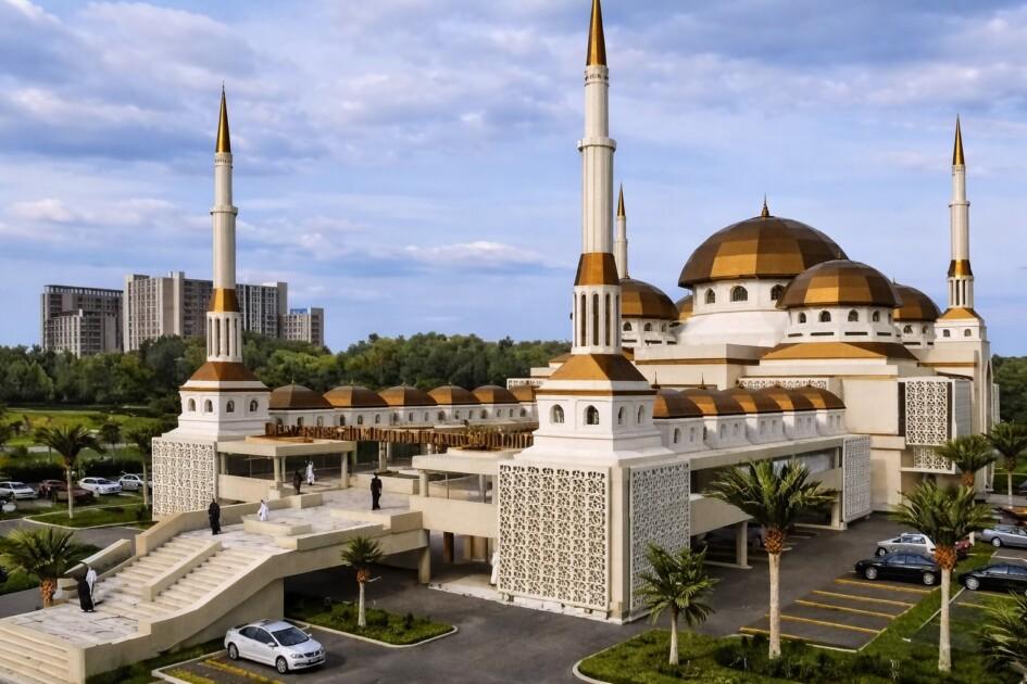 Dari desain yang telah disiapkan, tampilan masjid akan didominasi penuh oleh langgam arsitektur Ottoman Utsmaniyah. Masjid ini akan memiliki kubah sentral berukuran besar yang dikelilingi kubah-kubah kecil, empat menara pensil tinggi dan ramping di setiap sudut bangunan, serta interior yang luas dengan ubin bermotif khas Ottoman. Gaya ini merujuk pada ciri utama masjid Ottoman, yakni kubah utama yang monumental, menara ramping menjulang, interior terang berhias kaligrafi Arab dan ubin Iznik, serta halaman luas berserambi.