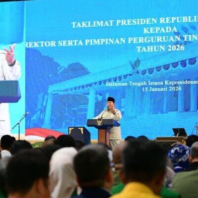 PUNGGAWANEWS, JAKARTA – Presiden Republik Indonesia, Prabowo Subianto, menyampaikan sejumlah arahan strategis terkait penguatan pendidikan tinggi nasional dalam kegiatan Taklimat Presiden RI bersama Rektor dan Pimpinan Perguruan Tinggi Negeri Tahun 2026. Kegiatan tersebut berlangsung di Istana Kepresidenan Jakarta, Kamis (15/1/2026).