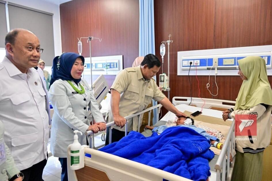 PUNGGAWANEWS, JAKARTA – Presiden Prabowo Subianto menjenguk korban tabrakan mobil Satuan Pelayanan Pemenuhan Gizi (SPPG) di RSUD Koja, Jakarta Utara, Selasa (16/12/2025). Prabowo tiba sekitar pukul 12.15-12.20 WIB didampingi Kepala Badan Gizi Nasional Dadan Hindayana dan Sekretaris Kabinet Teddy Indra Wijaya.