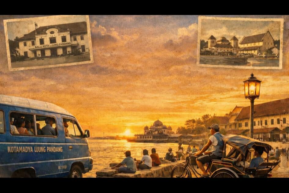 PUNGGAWANEWS, Sebelum menjadi Makassar yang modern, kota ini bernama Ujung Pandang — tempat angin Losari berhembus tenang dan jalanan masih lengang. Tahun 1993, kehidupan berjalan sederhana: becak berderit di gang sempit, angkutan kota biru merajai jalan, dan senja menjadi milik semua orang.